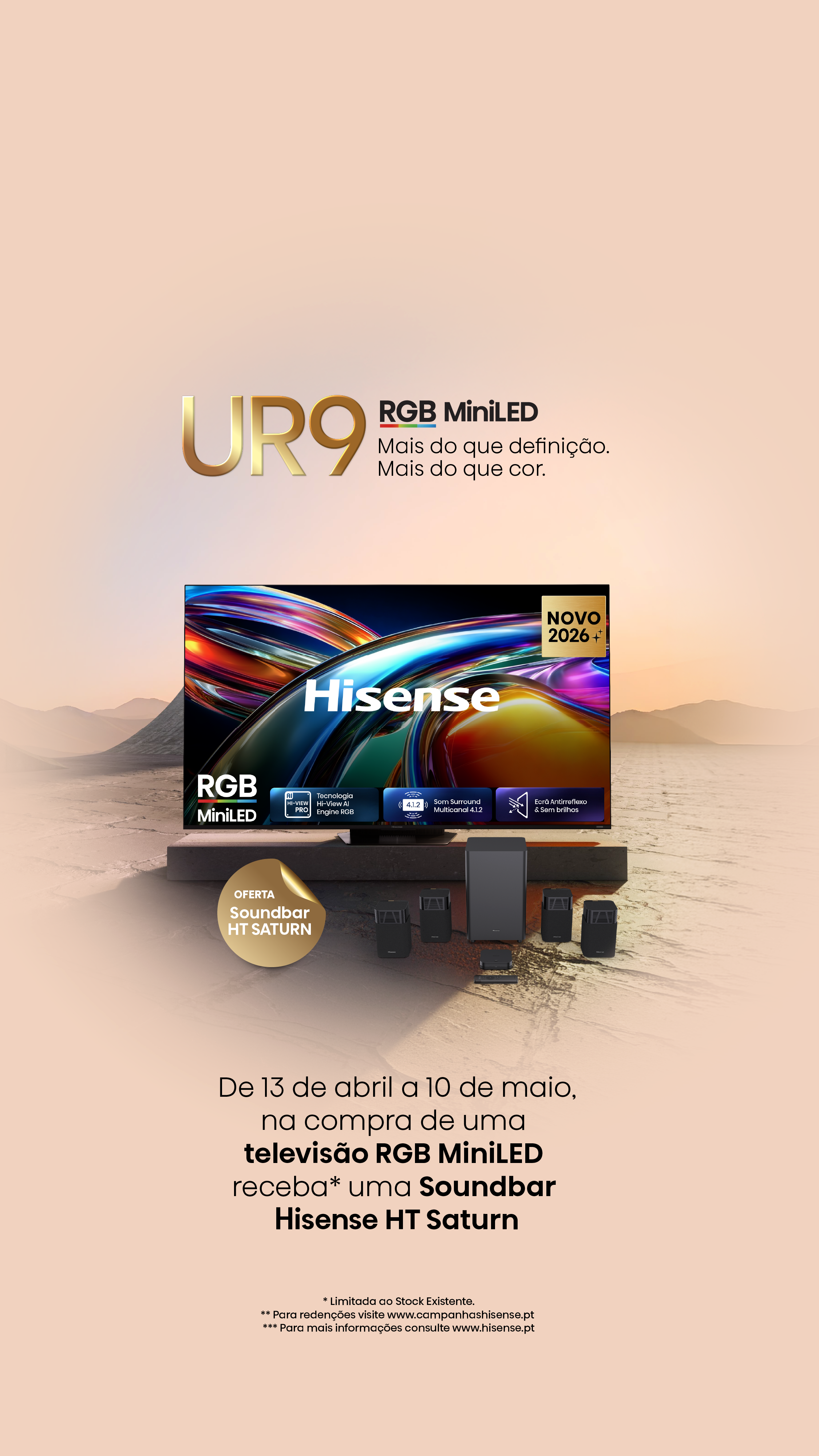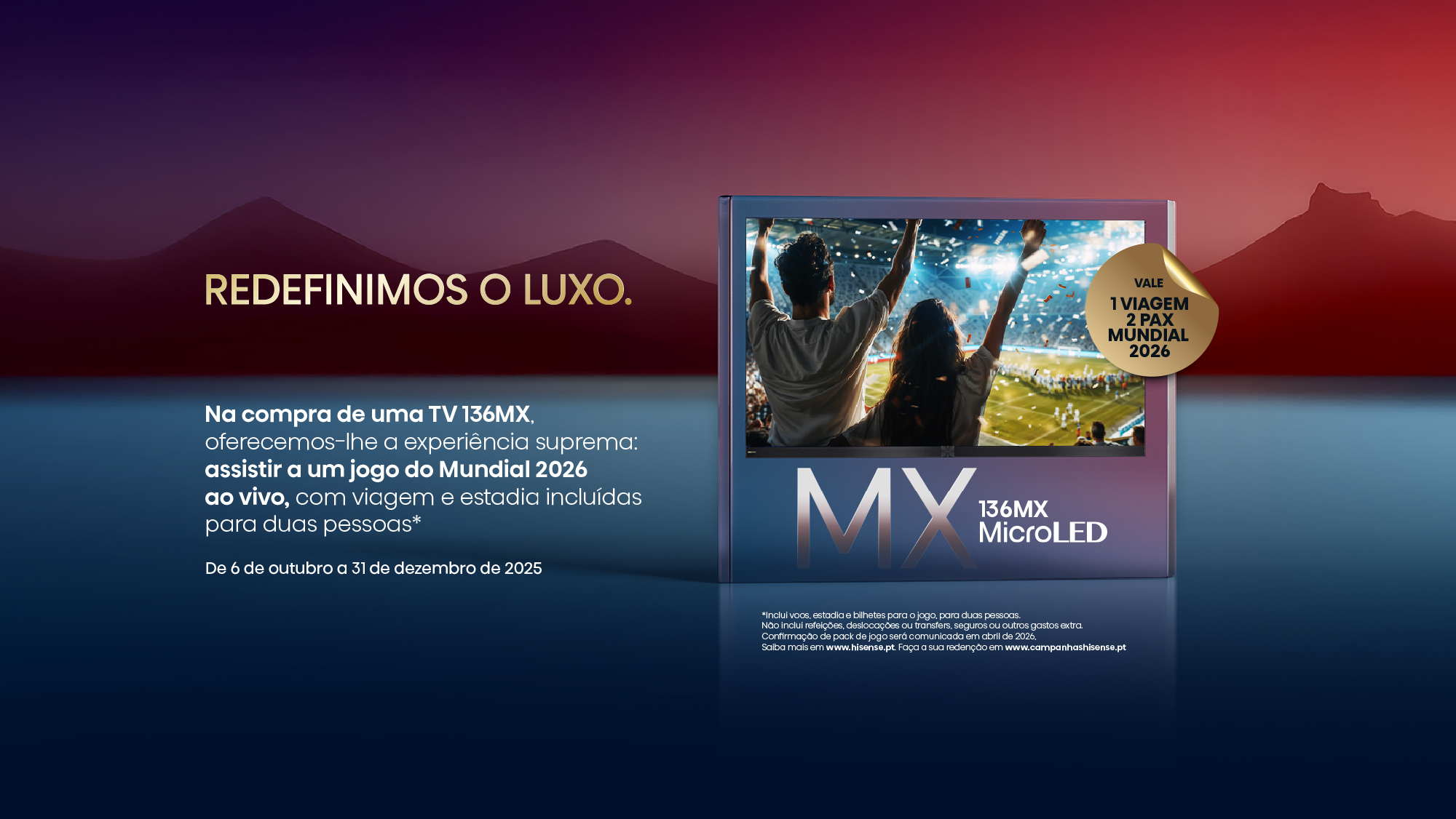 A Hisense tem como principal missão proporcionar às pessoas uma experiência enriquecedora elevando a fasquia das expectativas com cada um dos produtos. Tecnologia de excelência, Design sofisticado, desempenho superior e credibilidade fazem com que os nossos clientes confiem em nós, demonstrando o nosso compromisso inabalável em desenvolver os melhores produtos e serviços no mercado. Escolha a Hisense Iberia, onde a qualidade e a inovação para a sua casa encontram valor.
