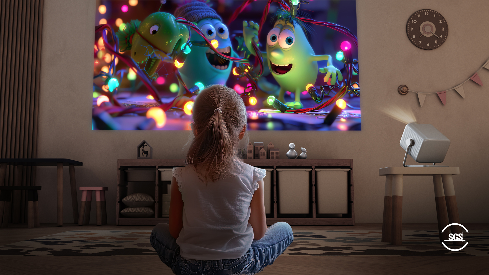 Tanto o Hisense PT1 Laser Cinema como o Mini Projetor Laser M2 Pro têm certificação SGS Low Visual Fatigue, o que garante conforto visual superior. Emitem zero luz azul nociva e têm cintilação reduzida, permitindo sessões longas sem fadiga ocular. Com pontuações de fadiga visual de apenas 2,98 e 2,86 respetivamente (bem abaixo da média de 4), pode desfrutar de séries, filmes e jogos por muito mais tempo.