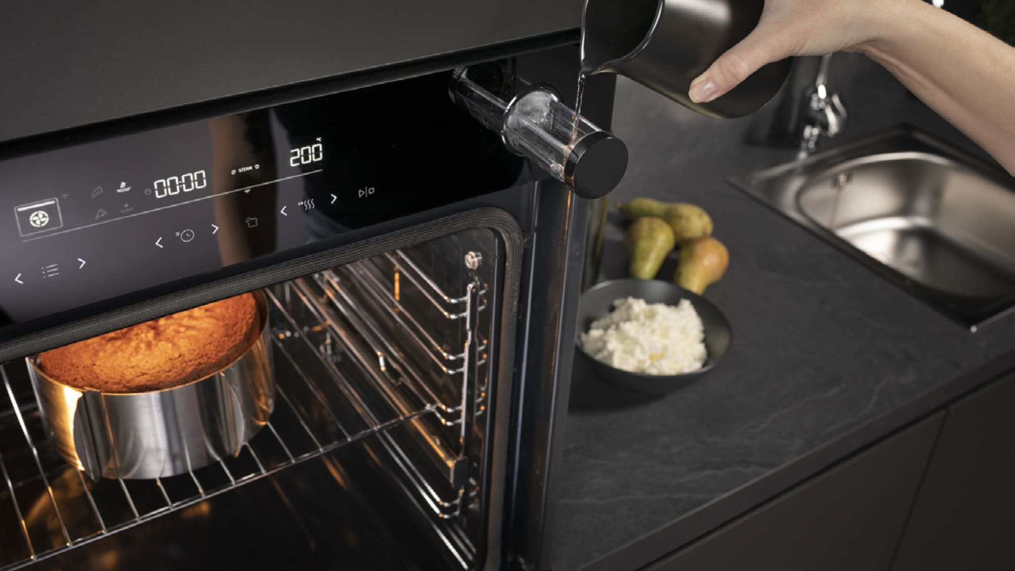 A adição de vapor permite obter melhores resultados: estaladiço no exterior, mas tenro e suculento no interior. O depósito de água aumenta a comodidade e também permite cozinhar a vapor durante mais tempo.