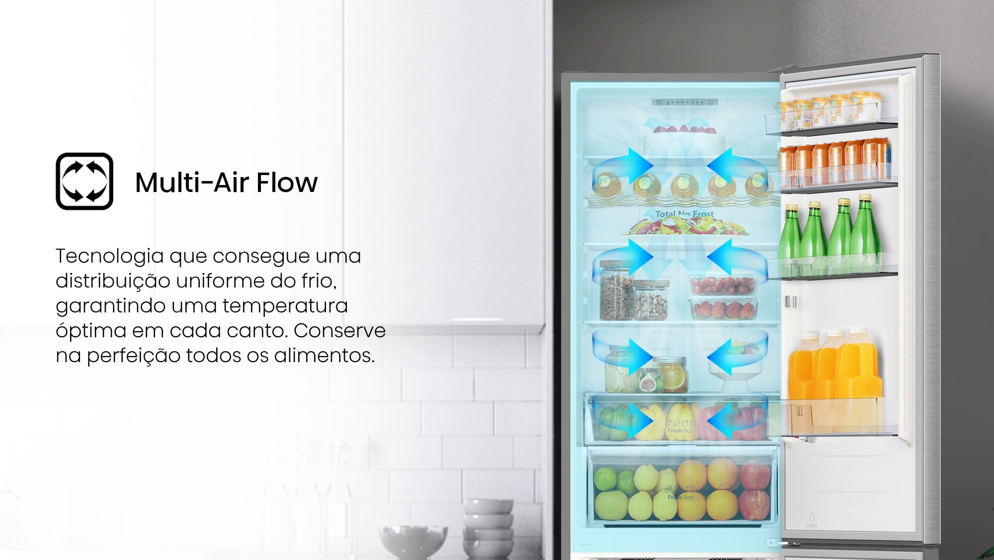 Com a tecnologia Total No Frost, não há acumulação de gelo no equipamento, tornando a descongelação uma coisa do passado. Além disso, mantém os seus alimentos frescos durante mais tempo.