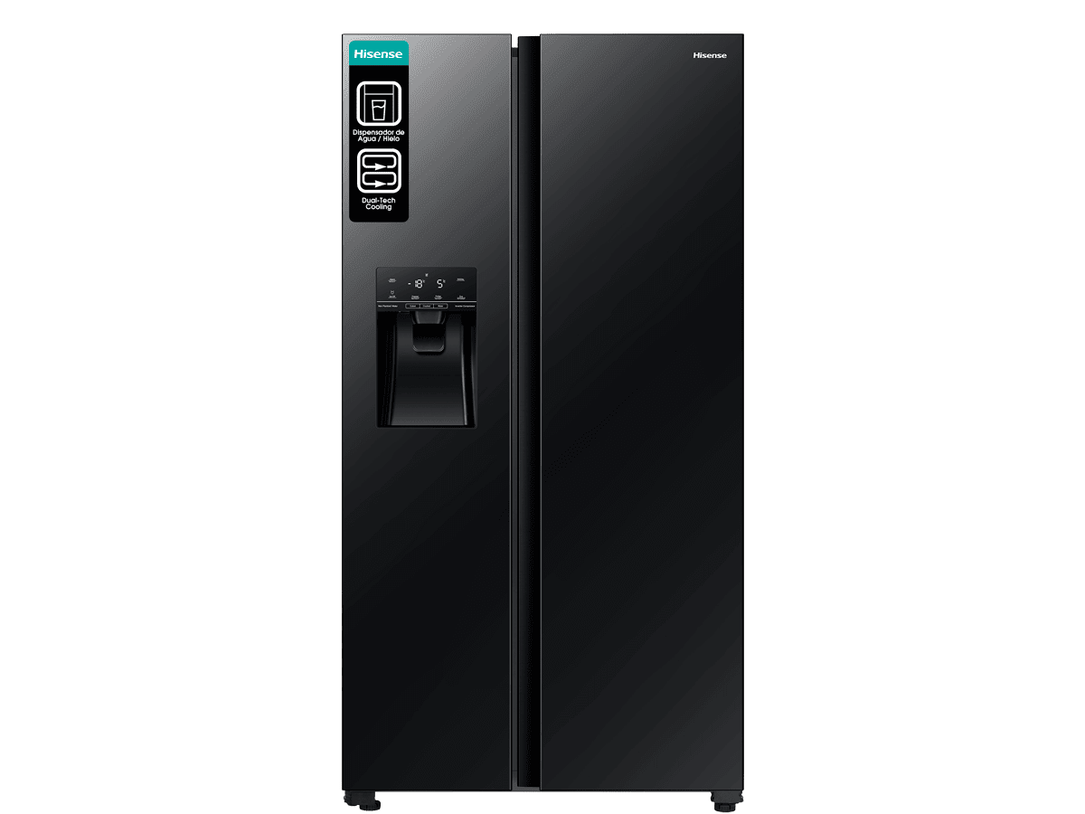 Frigorífico negro con dispensador de agua y hielo Hisense