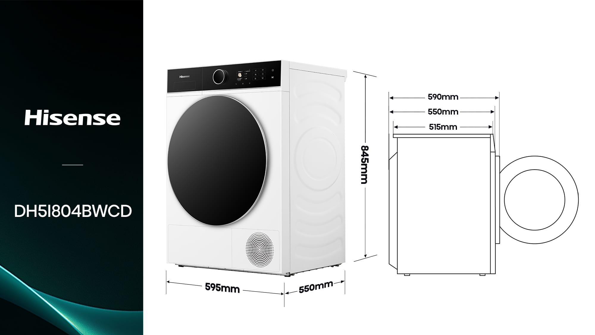 Hisense - DH5I804BWCD – Máquina de Secar Roupa Serie 5i, 8Kg, Classe C, Bomba de Calor, iPLAY™, iFIT™,
