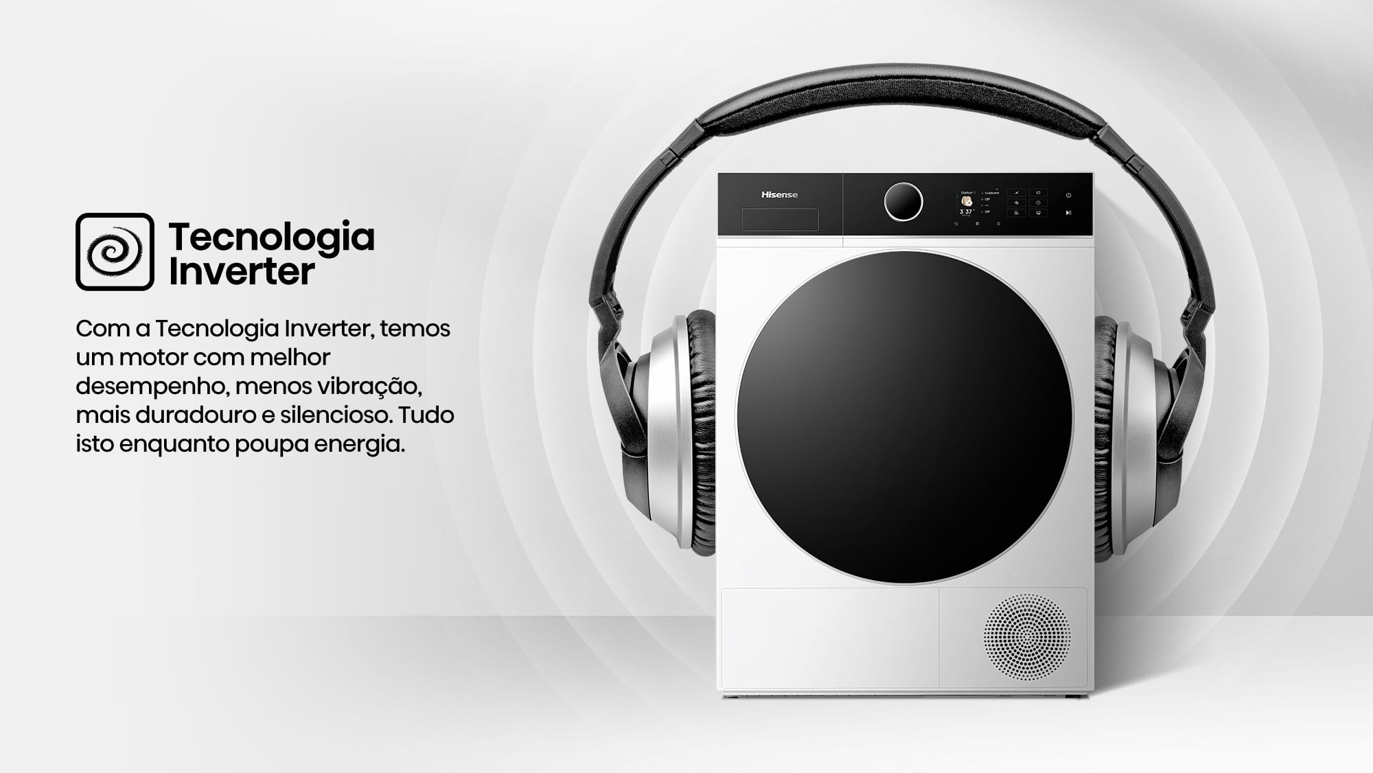 Com a Tecnologia Inverter, temos um motor com melhor desempenho, menos vibração, mais duradouro e silencioso. Tudo isto enquanto poupa energia.