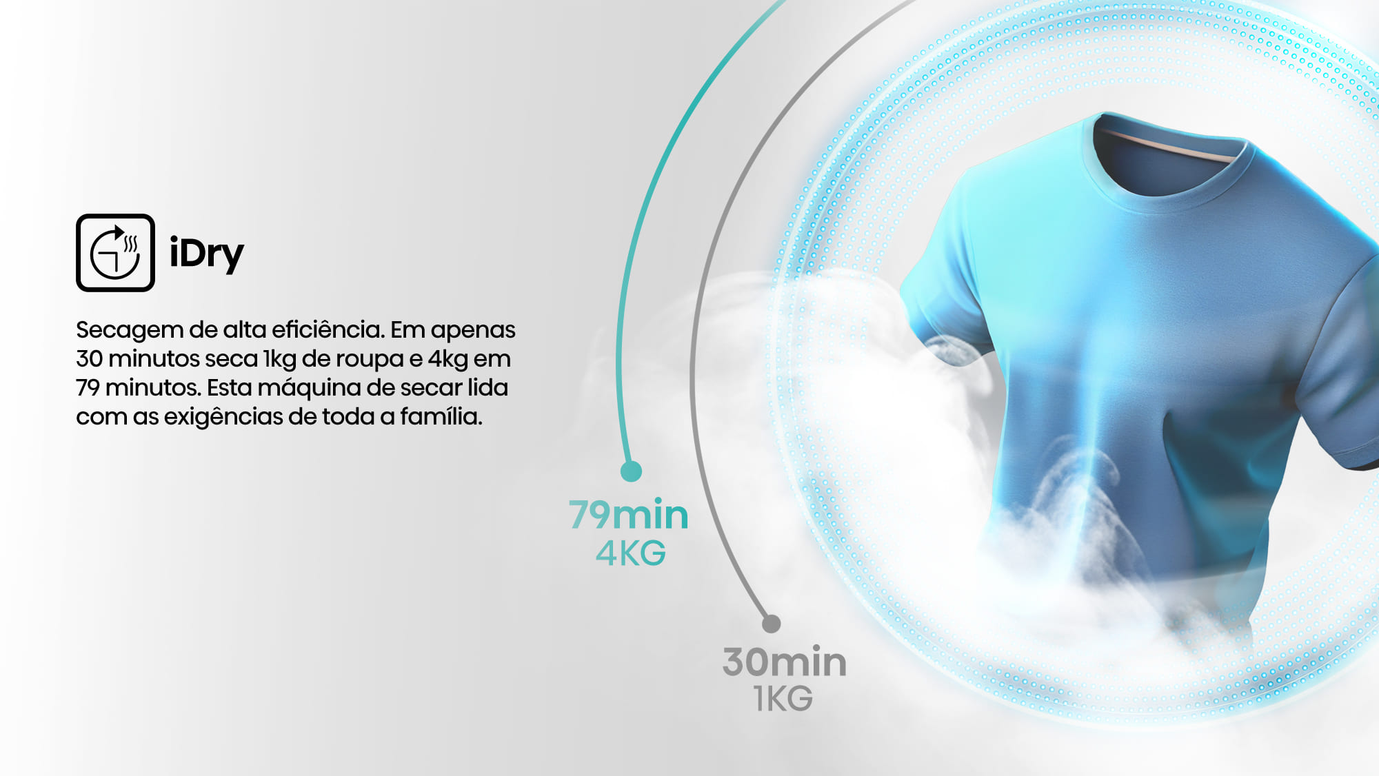 Desfrute de roupa seca em apenas 30* minutos, poupando-lhe tempo e energia. *Programa adequado para secar três camisas leves.
