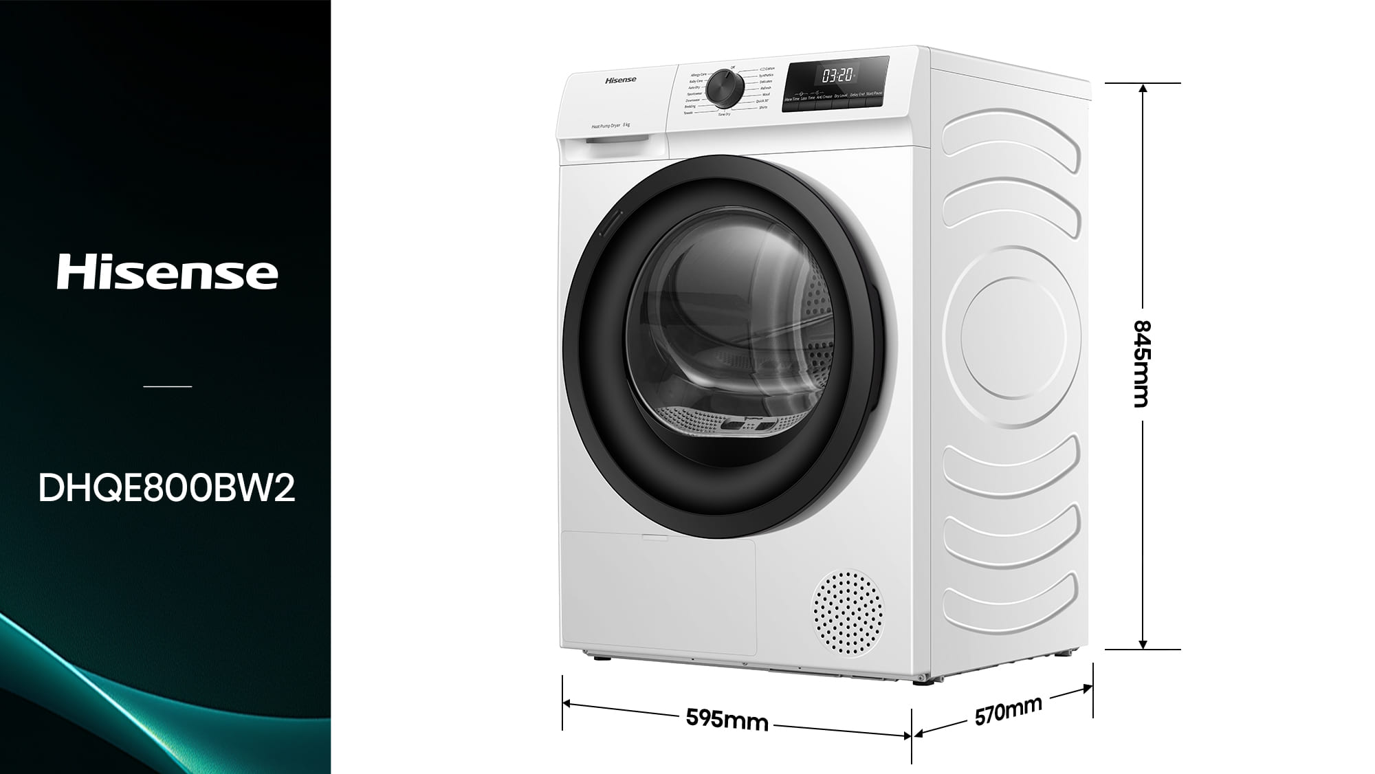 Hisense - DHQE800BW2 – Máquina de Secar Roupa Serie QE, 8Kg, Classe D, Auto Dry, Secagem rápida, Sensor de Humidade,