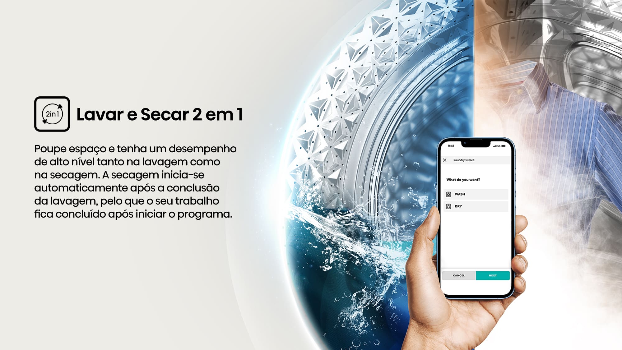 Diga adeus aos problemas manuais e olá a soluções inteligentes e que poupam tempo. A função Auto Wash deteta automaticamente o peso da sua roupa durante o ciclo de lavagem e adiciona a quantidade ideal de água e detergente, limpando as suas roupas de forma eficiente.