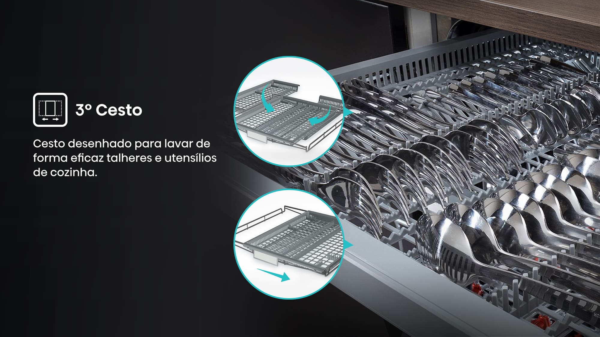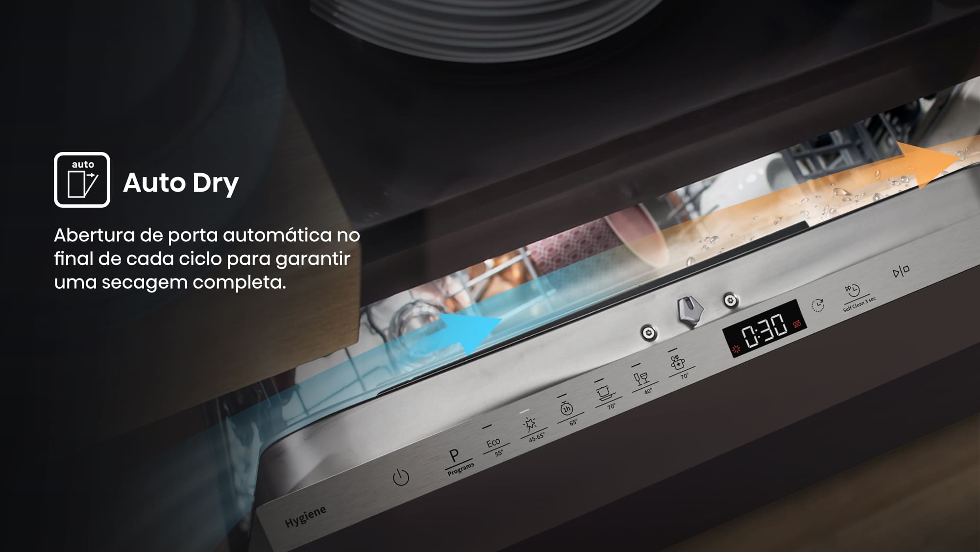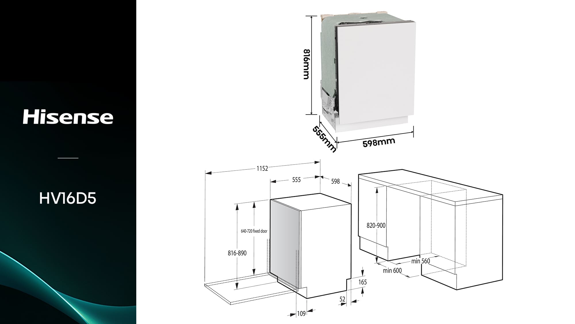 Hisense - HV16D5 – Máquina de Lavar Loiça de Encastre 16 conjuntos, Classe D, 3º Cesto, Auto Dry, Programa Auto,