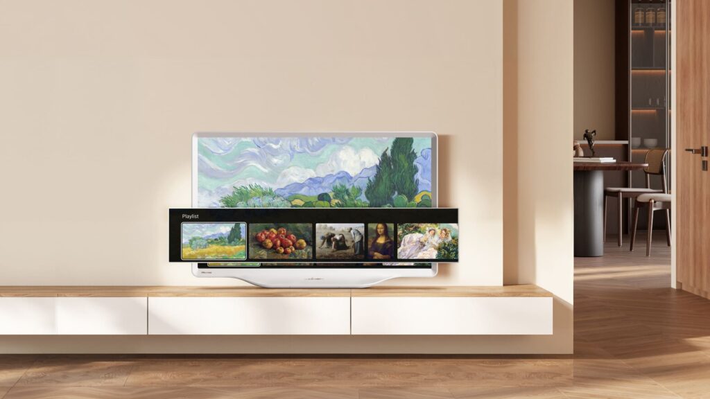 Com um formato elegante e acabamento neutro, a DécoTV representa um complemento natural e presença suave que trazem um estilo artístico ao espaço. Concebida para redefinir a interseção entre estética e tecnologia, oferece uma atualização acessível e de grande impacto, sendo perfeita para quartos, estúdios, salas de jantar ou qualquer ambiente em que o design e o desempenho são valorizados.