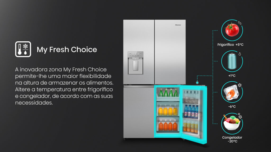 - Zona “My Fresh Choice”: Permite alterar a temperatura entre frigorifico e congelador, e maior flexibilidade na altura de armazenar os alimentos.
