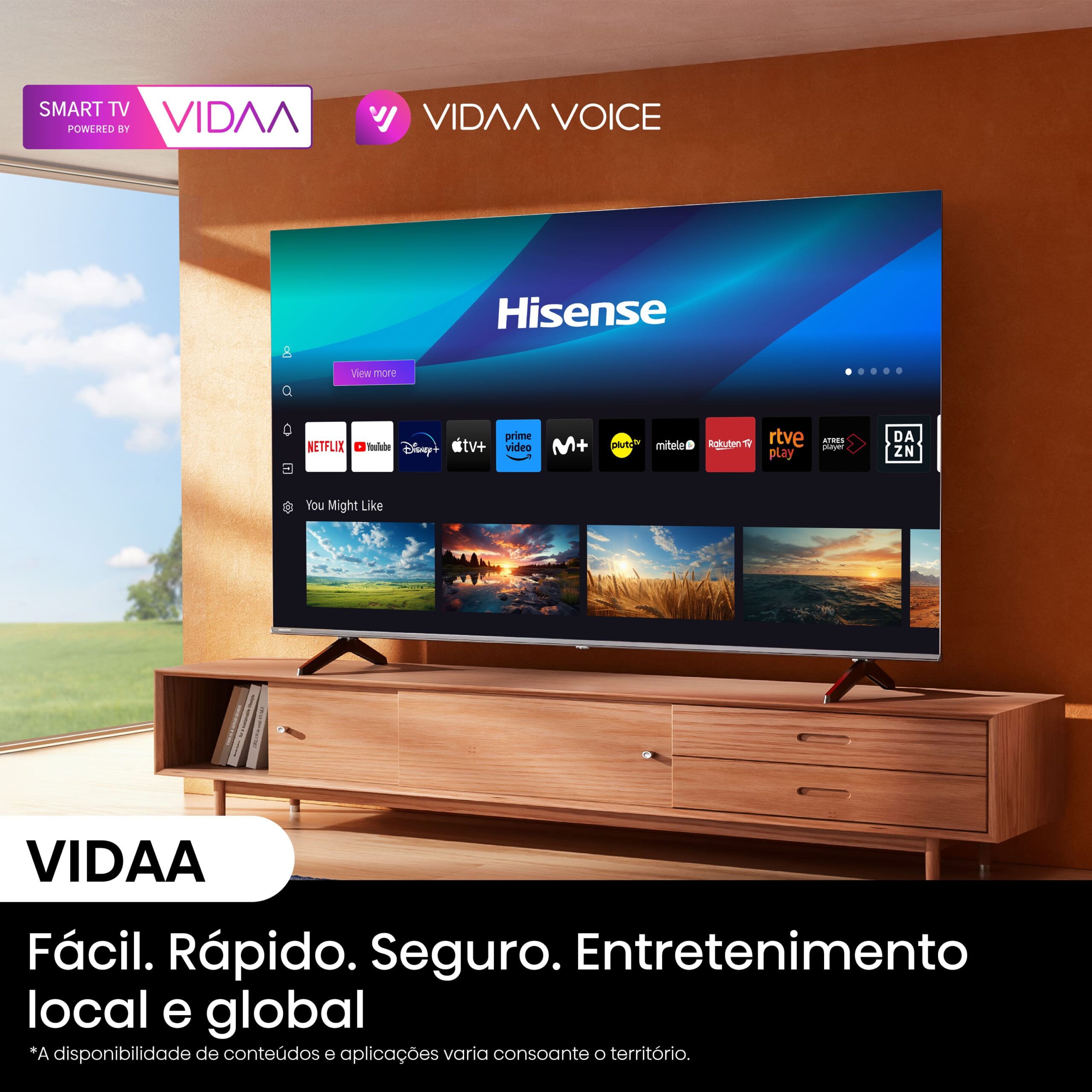 Assuma o controlo sem esforço com o Controlo por Voz Hisense. Prima o botão e fale para orientar a sua experiência de visualização. Mude de programa, ajuste o volume ou navegue por novos conteúdos, tudo com o poder da sua voz. É a liberdade de um controlo sem falhas, um comando de voz de cada vez.